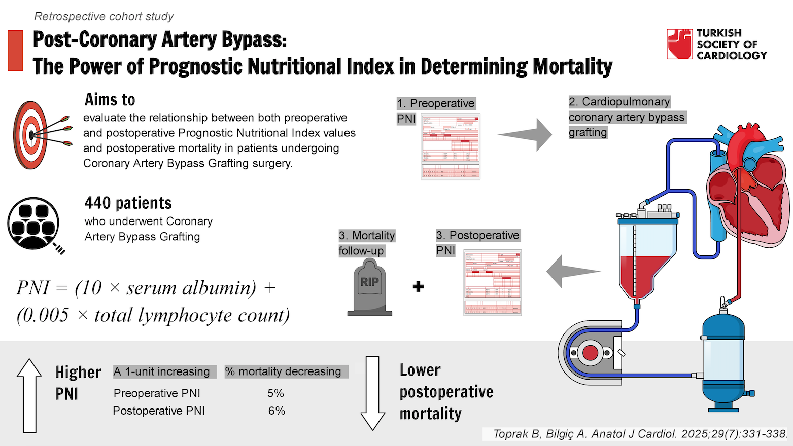- Both preoperative and postoperative prognostic nutritional index values are strong, independent predictors of mortality in coronary artery bypass grafting patients.