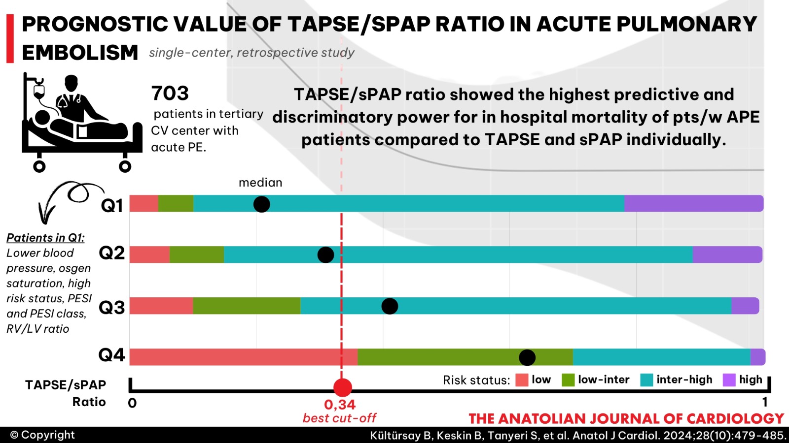 - The interpretation and utilization of the TAPSE/sPAP cut-off value in acute PE can assist in identifying patients at risk of deterioration and guide the consideration of more intensive treatment options across all risk groups.